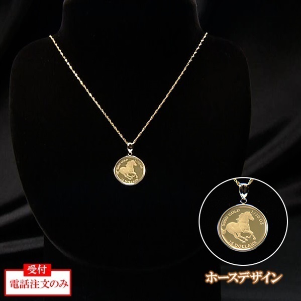 純金ツバルホースコインペンダント 1/10oz(造幣局検定マーク付) ※電話注文のみ受付