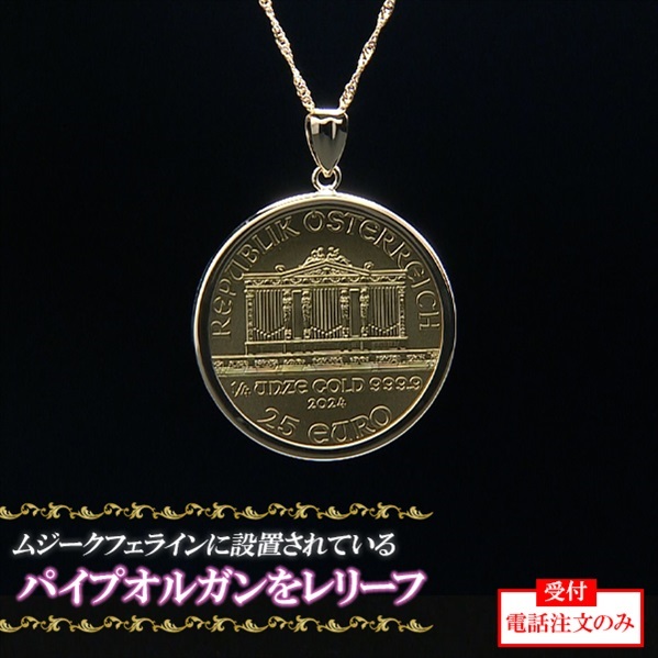 純金ウィーンフィルハーモニーコインペンダントヘッド 1/2oz ※電話注文のみ受付